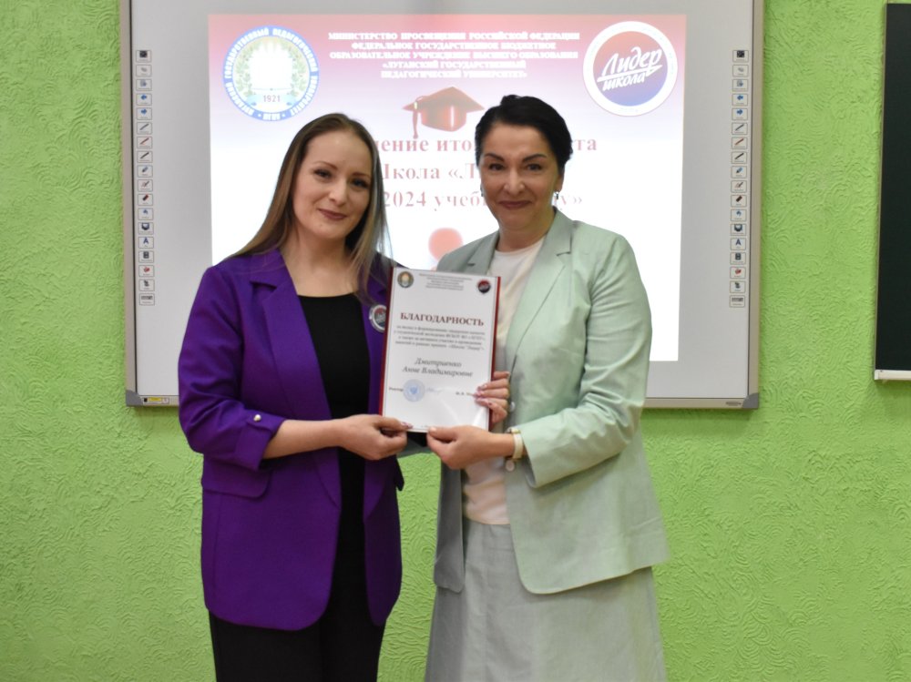 Ректор ЛГПУ, депутат Народного Совета ЛНР Жанна Марфина и руководитель Школы «Лидер» Анна Дмитриенко