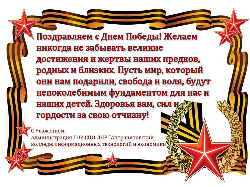 Поздравление с 9 Мая от администрации ГОУ СПО ЛНР «Антрацитовский колледж информационных технологий и экономики»