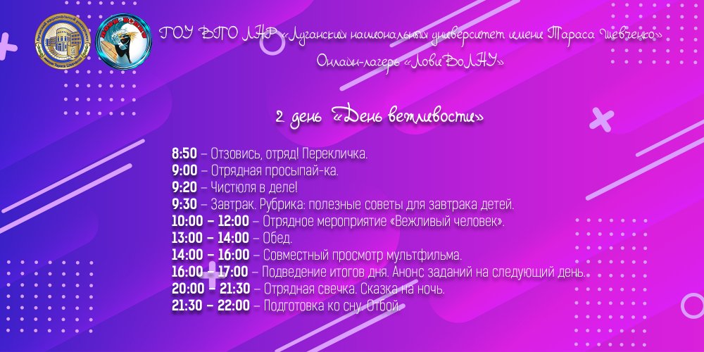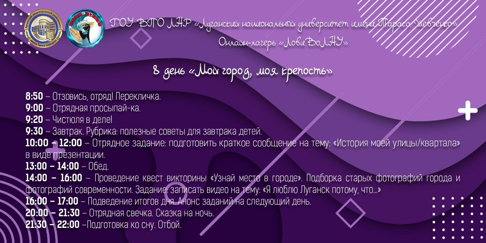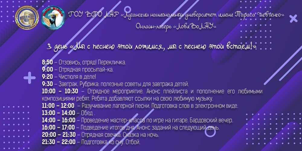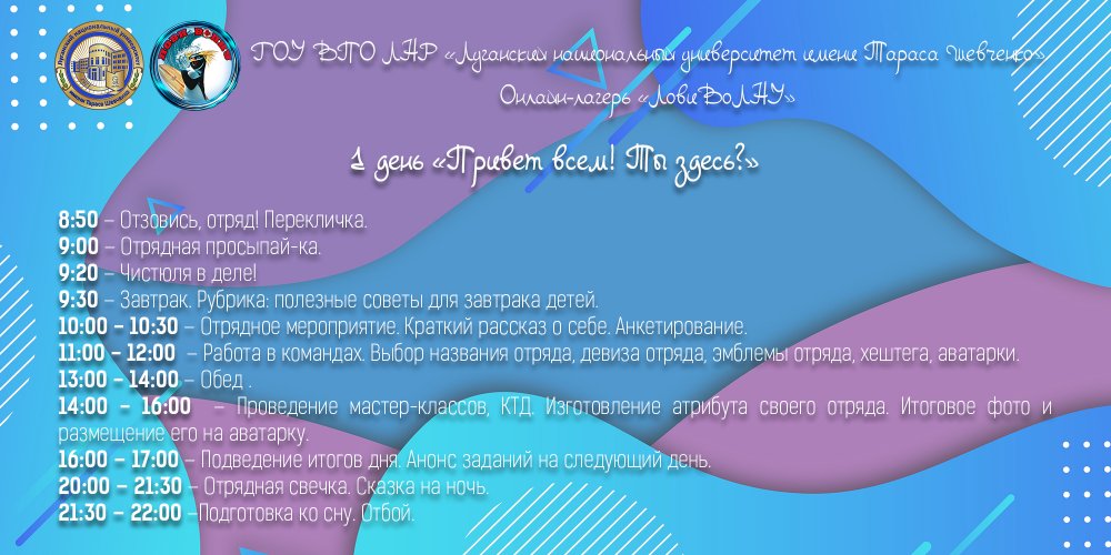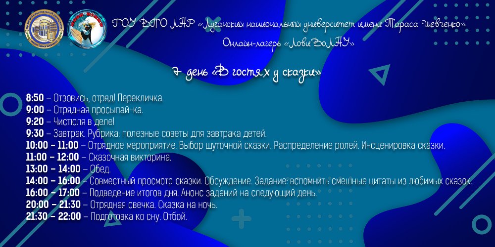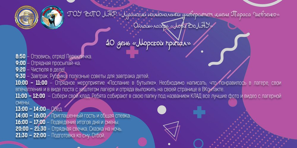 ⚓ Вступить в группу «Онлайн-лагерь "Лови Волну" с Луганским государственным педагогическим университетом по ссылке: https://vk.com/lovivolny1;