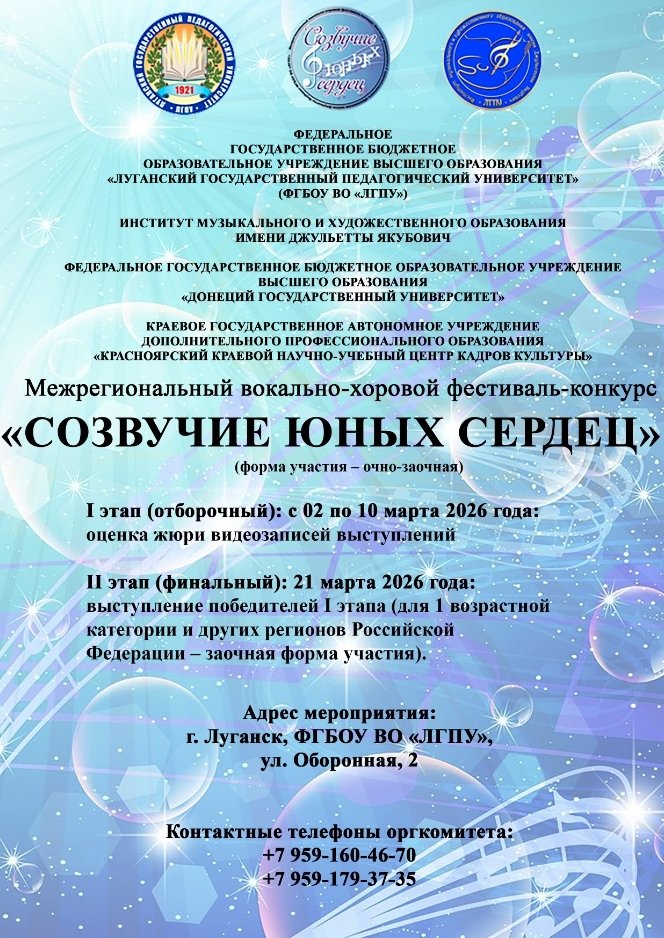 Положение о проведении Межрегионального вокально-хорового фестиваля-конкурса «Созвучие юных сердец»