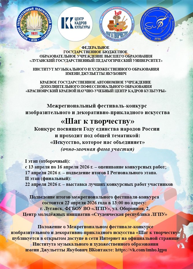 Межрегиональный фестиваль-конкурс изобразительного и декоративно-прикладного искусства «Шаг к творчеству» Информационное письмо Положение о конкурсе