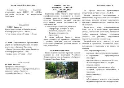 Кафедра биологии является мощным структурным подразделением Института естественных наук. Задачей кафедры является подготовка высококвалифицированных специалистов в области биологических наук, отвечающих самым высоким международным стандартам. В настоящее время кафедра осуществляет подготовку бакалавров и магистров по специальности «Биология».