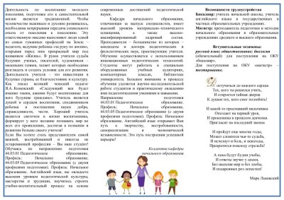- формирование профориентационных материалов для ознакомления выпускников школ с педагогическими профессиями.