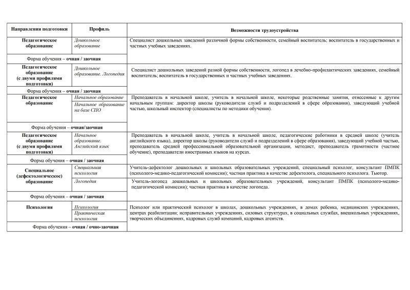 В течение следующих лет на психолого-педагогическом факультете были открыты направления подготовки «Дошкольное образование», «Коррекционное образование», «Социальная педагогика».
