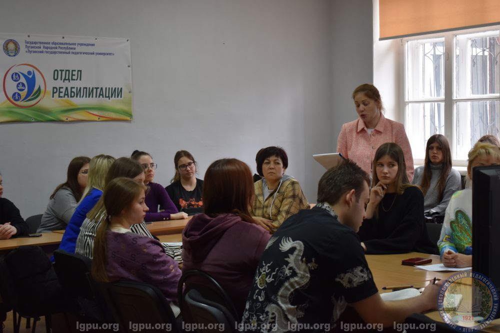 В отделе инклюзивного образования и реабилитации Центра социально-гуманитарной работы Луганского государственного педагогического университета 19 февраля состоялся семинар для студентов с инвалидностью и представителей волонтерских отрядов на тему «Паралимпийские игры-доказательство безграничных возможностей человека»Целью семинара стало формирование мотивации студентов к активному и здоровому образу жизни примерами увлеченности и упорства паралимпийских спортсменов, включение учащихся в активное освоение системы олимпийских и паралимпийских ценностей, развития интереса к паралимпийскому движению в мире и России, осуществление просветительской работы среди студентов с инвалидностью и ОВЗ, участников волонтерских отрядов ЛГПУ.