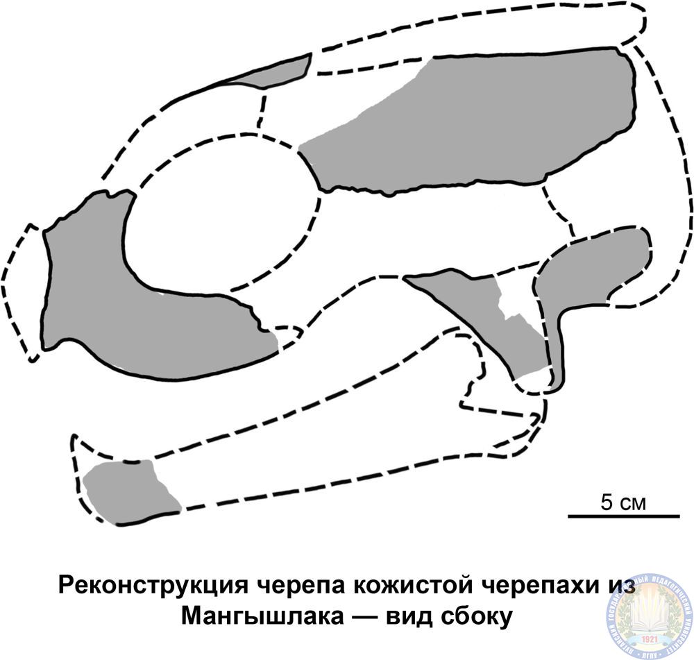 Доцент кафедры географии Луганского государственного педагогического университета, кандидат геологических наук Евгений Звонок, младший научный сотрудник лаборатории орнитологии Зоологического института Российской академии наук Андрей Пантелеев и заместитель директора по научной работе Зоологического института Российской академии наук, кандидат биологических наук Игорь Данилов опубликовали совместную статью о древних кожистых черепахах из отложений шорымской свиты полуострова Мангышлак (Казахстан) возрастом около 40 млн лет.11 сентября 2024 года коллектив авторов опубликовал новую научную статью, в которой содержатся данные о двух экземплярах морских черепах семейства Dermochelyidae (кожистые черепахи) возрастом около 40 млн лет из Западного Казахстана, земная поверхность которого в то время находилась на дне океана Тетис. Первый из описанных экземпляров представляет собой несколько костей черепа одной особи. В мире известно всего несколько черепов или крупных частей (как у одного из новых экземпляров) черепов ископаемых кожистых черепах, а череп, как сложнейшая структура в составе скелета, очень информативен для определения систематического положения, изучения эволюции и экологии ископаемых черепах. Кроме того, это первая находка черепных костей кожистых черепах на территории постсоветских стран и первая их находка в интервале с лютетского по приабонский век палеогенового периода, частично заполняющая большой временной пробел (около 13,9 млн лет) в наших знаниях о строении черепа дермохелиид. Невозможно установить, относятся ли эти черепные кости к новому виду или уже известному, так как другие кожистые черепахи из этого временного интервала известны только по разрозненным костям нечерепного скелета. Как и другие ископаемые и современные кожистые черепахи, мангышлакская форма была гигантской. Эти кости принадлежали особи с длиной черепа около 30 см.