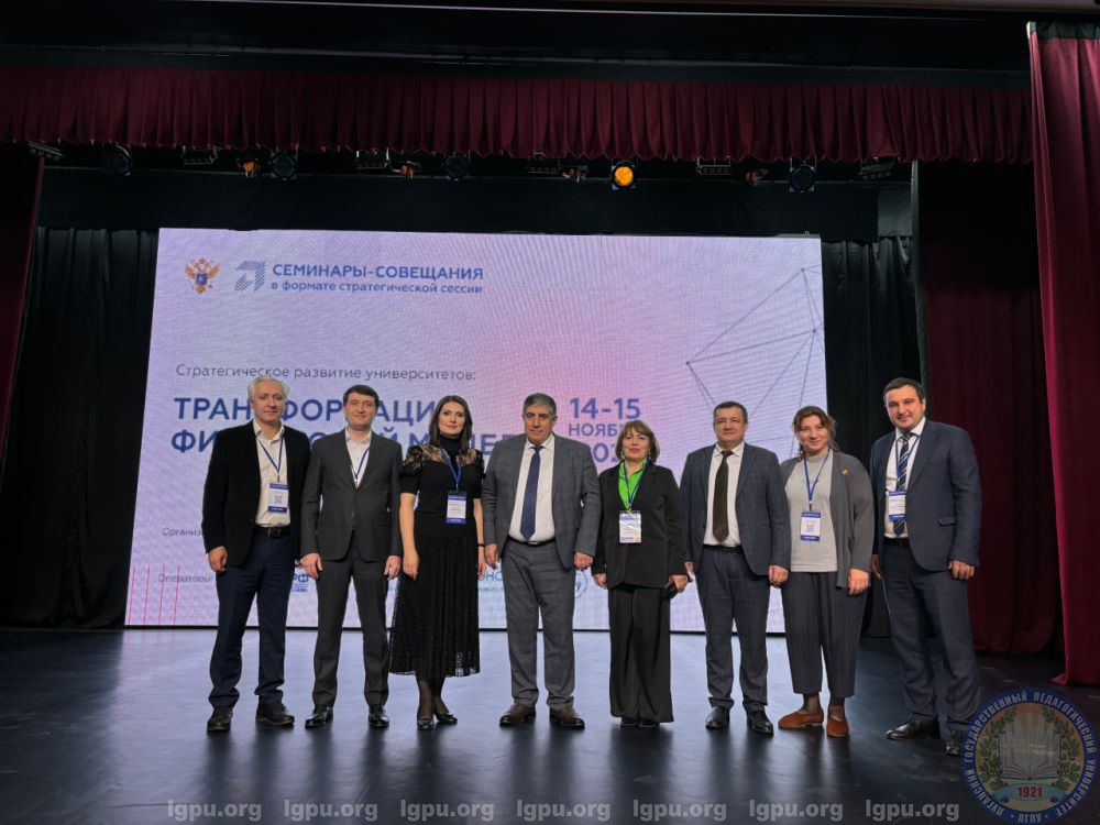 Делегация Луганского государственного педагогического университета приняла участие в семинаре-совещании в формате стратегической сессии «Стратегическое развитие университетов: трансформация финансовой модели», который прошел на базе Кабардино-Балкарского государственного университет имени Х.М. Бербекова с 14 по 15 ноября.Проректор по международной и проектной деятельности ЛГПУ Иван Дяченко, главный бухгалтер Ирина Пилюгина и заместитель главного бухгалтера Наталья Дурасова представили университет на мероприятии.
