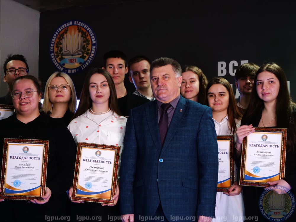В рамках мероприятия за активное участие в жизни университета, вклад в развитие студенческого сообщества и инициативность в реализации просветительских и культурных проектов, а также в связи с празднованием Дня студента благодарностями ЛГПУ были награждены активисты вуза и сотрудники Центра молодёжных инициатив. Отметили лучших из лучших, тех, кто достиг успехов в учебе, науке, спорте, общественной жизни, волонтерстве.