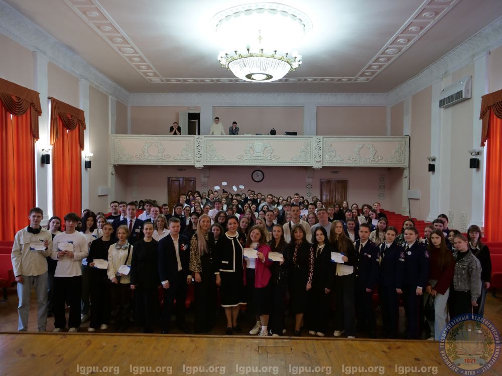 По завершении работы площадок в Малом актовом зале ЛГПУ состоялось торжественное награждение победителей и призеров конкурса творческих работ «Сердце России» из числа участников проекта «Лидерство – шаг к успеху!».