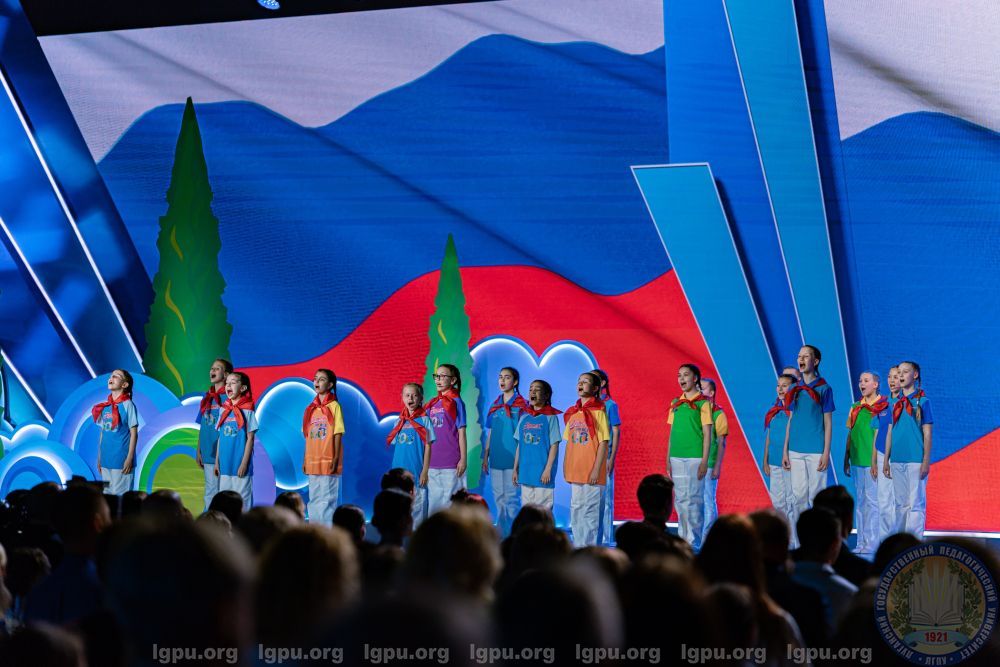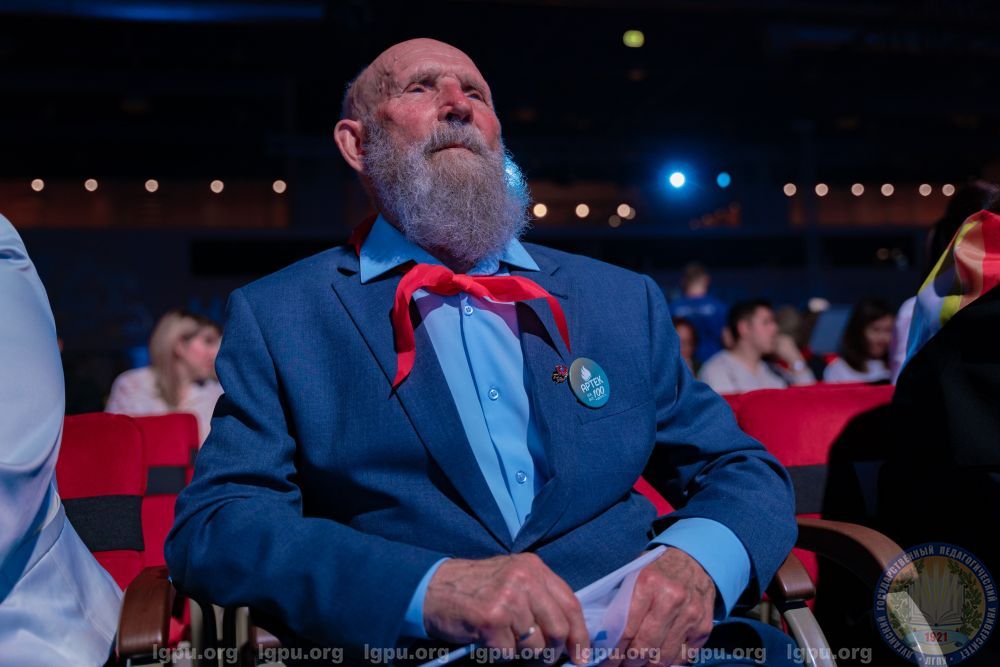 Министр просвещения РФ Сергей Кравцов поднялся на сцену вместе с Валентиной Черкасовой. Ребенком она пережила блокаду Ленинграда, а после войны, в 1949 году, отдыхала в «Артеке». Вместе они исполнили песню «Артековская клятва», написанную журналистами «Пионерской правды» Владимиром Богановым и Анатолием Ануфриевым.
