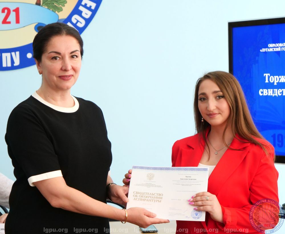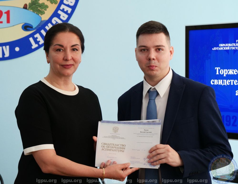 В Луганском государственном педагогическом университете 30 июня прошла церемония торжественного вручения свидетельств об окончании аспирантуры.На мероприятии присутствовали ректор ЛГПУ, депутат Народного Совета ЛНР Жанна Марфина, первый проректор вуза, депутат Совета городского округа города Луганска Юрий Филиппов, проректор по научно-исследовательской работе Виктория Зинченко, заведующий научным отделом Евгения Санченко, заведующий сектором аспирантуры Рогнеда Евдокимова, заведующие кафедрами, преподаватели и выпускники.