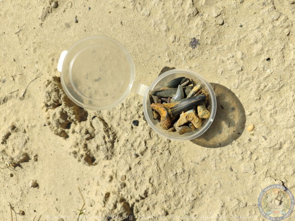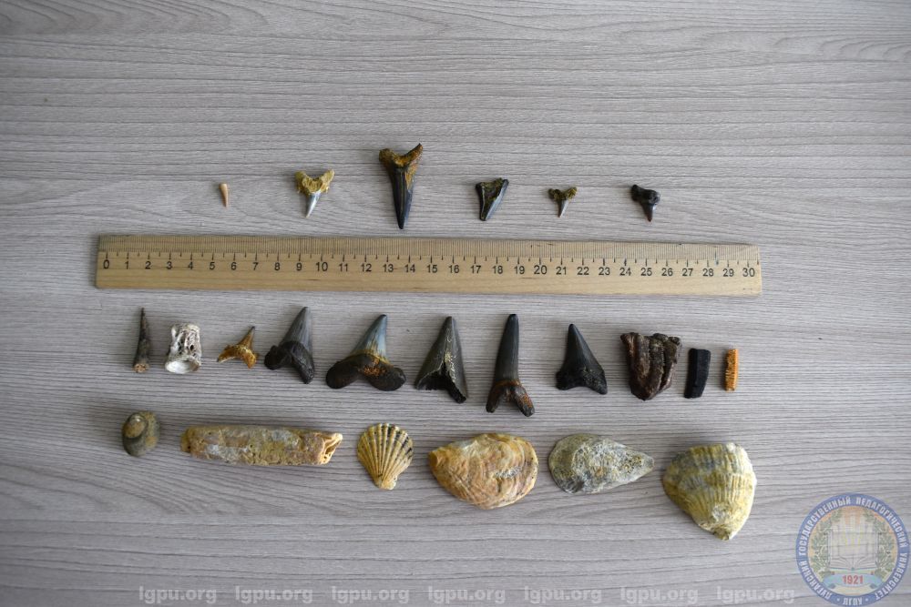 Собран богатый материал – преимущественно крупные зубы акул, скатов, костистых рыб; раковины двустворчатых моллюсков, фрагменты костей морских и мягкотелых черепах.