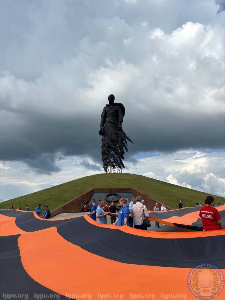 Ещё студенты поучаствовали в акции «Лента» у Ржевского мемориала Советскому солдату: у подножия величественного монумента была развернута Георгиевская лента длиной 300 метров и шириной 7 метров.