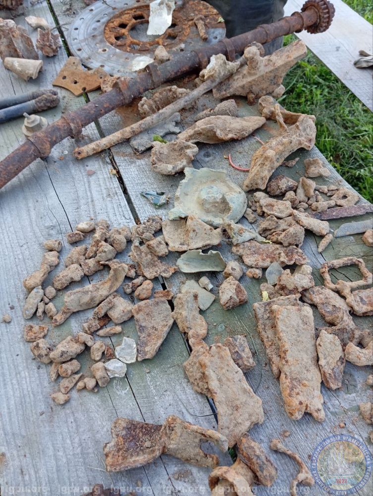 За время поисковых работ студентам удалось найти множество интересных находок: части снарядов, патроны, запчасти от техники, огромное количество гильз и пуль, часть поясного ремня советского солдата и даже кусок бронестекла с танка!
