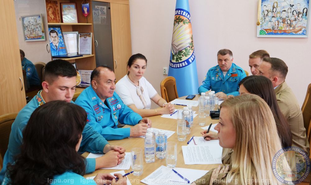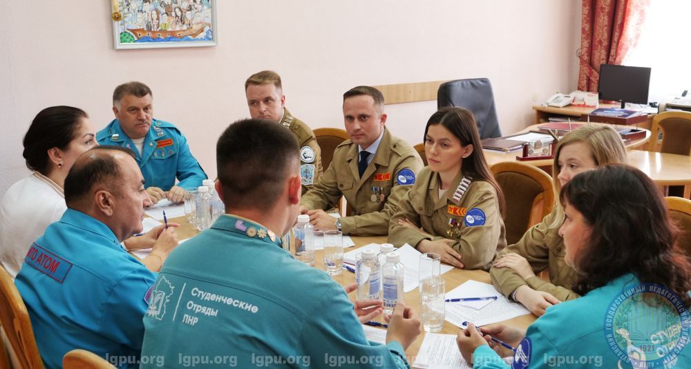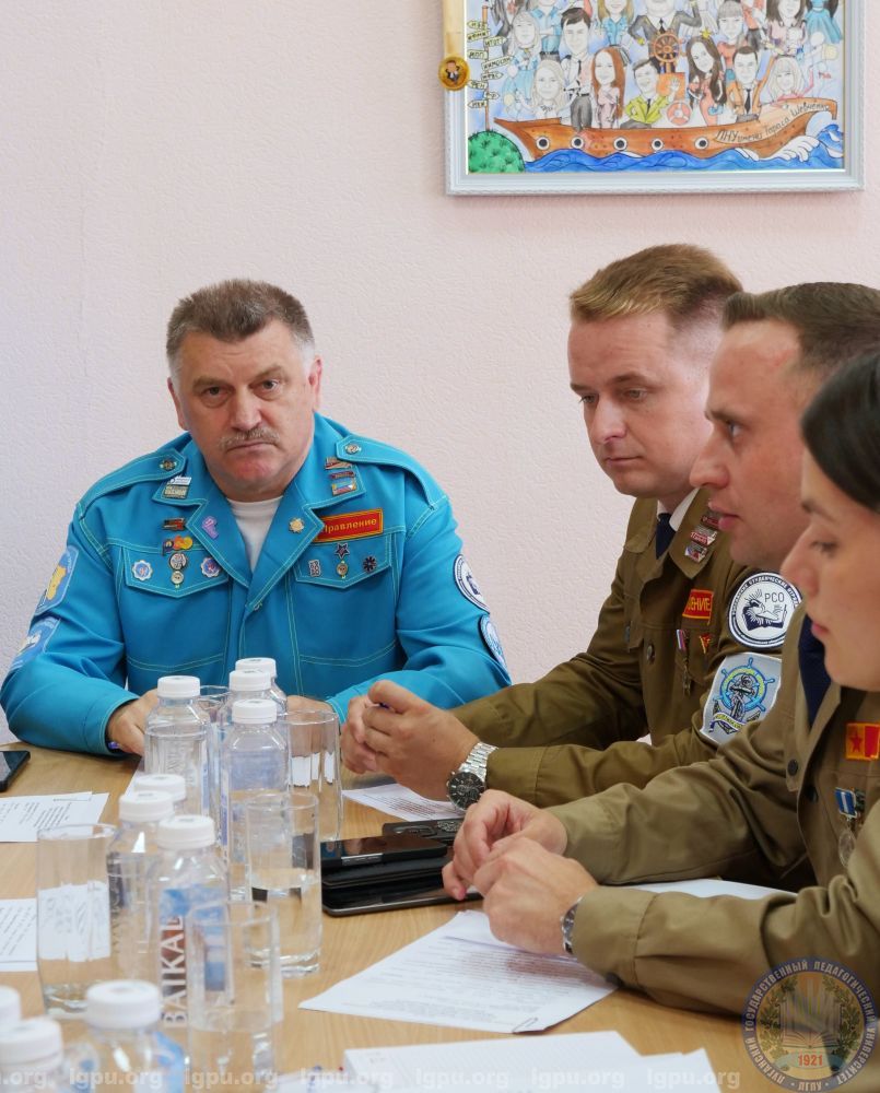 Встреча представителей Центрального штаба Российских Студенческих Отрядов (РСО) со штабом Луганского государственного педагогического университета прошла 5 августа на базе вуза.На мероприятии присутствовали: председатель Попечительского совета Луганского педвуза, депутат Народного Совета ЛНР, почетный боец студенческого строительного отряда «АТОМ» университета Павел Пилавов; ректор вуза, депутат Народного Совета ЛНР Жанна Марфина; руководитель (командир) Центрального штаба молодёжной общероссийской общественной организации «Российские Студенческие Отряды» (МООО «РСО») Ярослав Зубащенко; первый проректор ЛГПУ, председатель Правления Луганского регионального отделения МООО «РСО», депутат городского совета городского округа город Луганск Юрий Филиппов; член Правления МООО «РСО» Денис Кондратьев; руководитель (командир) регионального штаба Луганского регионального отделения МООО «РСО» Анна Сычева; командир штаба студенческих отрядов ЛГПУ Богдан Поролов; представители Центрального штаба МООО «РСО» и командного состава студенческих отрядов ЛНР.