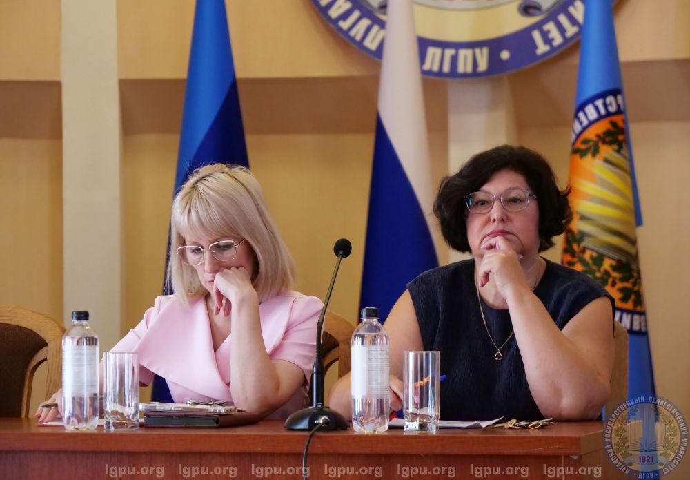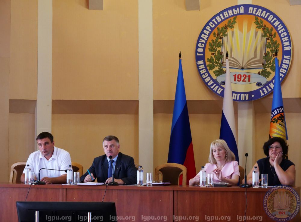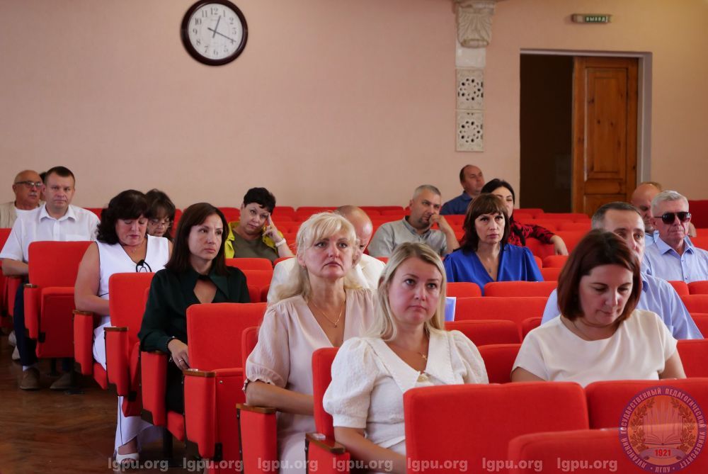 В малом актовом зале Луганского государственного педагогического университета 28 августа прошло заседание Ученого совета вуза.В мероприятии приняли участие: первый проректор ЛГПУ Юрий Филиппов, проректор по учебно-методической работе Елена Дятлова, проректор по научно-исследовательской работе Виктория Зинченко, проректор по международной и проектной деятельности Иван Дяченко, ученый секретарь Александр Вербовский, руководители структурных подразделений и филиалов; профессорско-преподавательский состав и сотрудники университета.