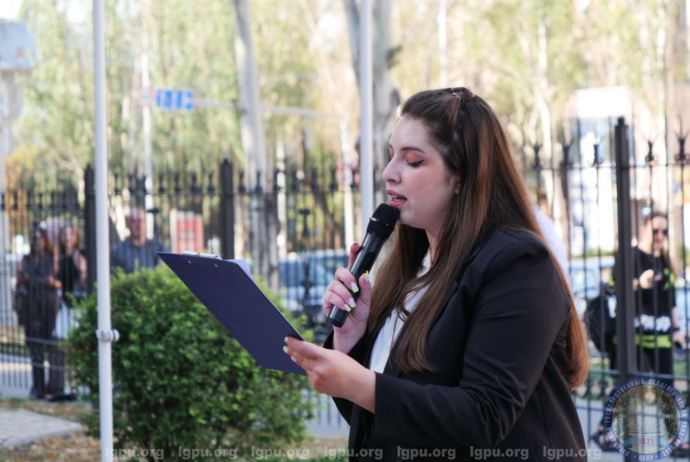 – В этот день праздник у всех, кто причастен к сфере образования. В поздравлении с Днём знаний наш Президент Владимир Путин отметил, что будущее нашей страны – за образованными, энергичными людьми, а значит, за вами, дорогие ребята. Каждый год на этой площади мы принимаем в свою семью тысячу первокурсников, и каждый раз нам интересно узнать, какие вы, что у вас в душе и в сердце. Убеждена, что ваши надежды и мечты в ЛГПУ обязательно исполнятся.