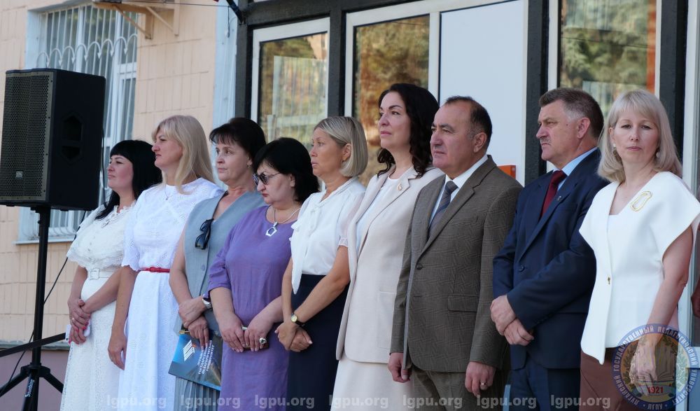 Торжественный день продолжился праздничной линейкой. На мероприятии присутствовали: председатель Попечительского совета университета, депутат Народного Совета ЛНР Павел Пилавов; ректор ЛГПУ, депутат Народного Совета ЛНР Жанна Марфина; первый проректор Юрий Филиппов; проректор по учебно-методической работе Елена Дятлова; проректор по воспитательной работе и молодежной политике Ольга Жданова; руководители структурных подразделений, преподаватели и студенты вуза.