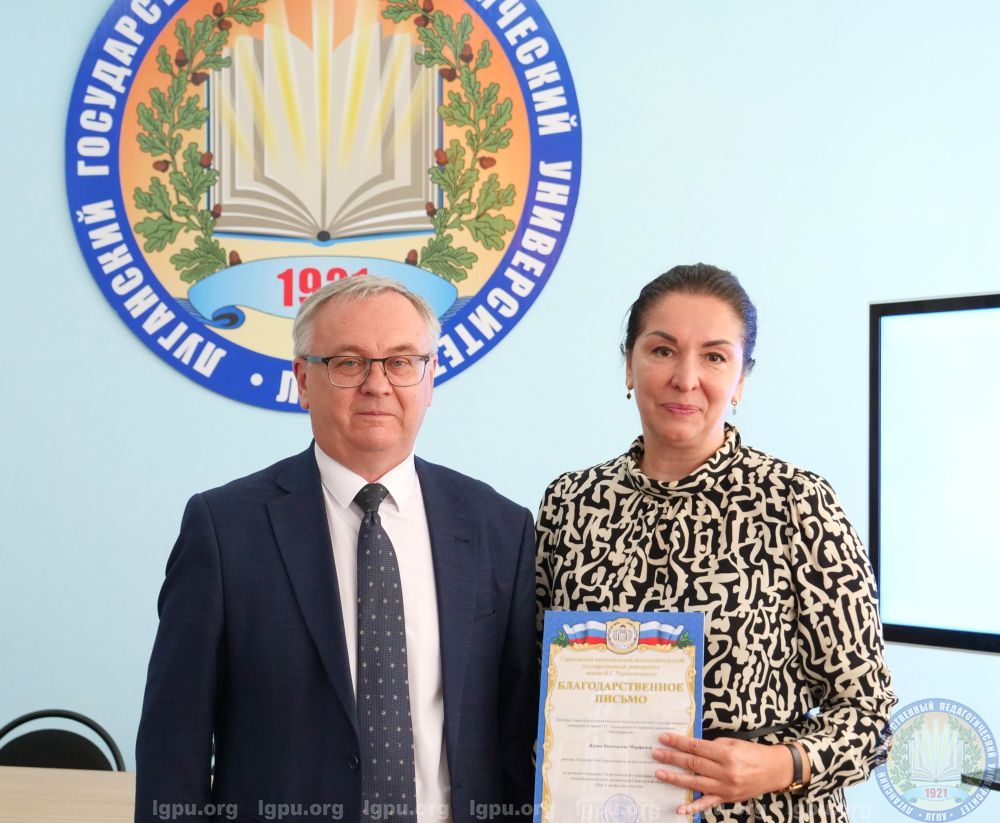 Алексей Чумаченко вручил благодарности Жанне Марфиной и директору Центра развития образования (филиала) ЛГПУ Ларисе Ткаченко.