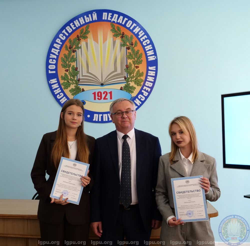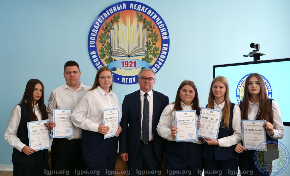 Ректор Саратовского педагогического наградил свидетельствами о прохождении обучения в Виртуальном педагогическом классе СГУ обучающихся Луганской СШ № 38 имени К.Е. Ворошилова, ЛГЭЛИ, Старобельской СШ № 2, Свердловской СШ № 5 имени Героя Советского Союза Гавриила Здановича, Беловодской СШ № 1.