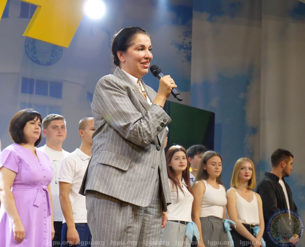 – Радостно приветствовать вас в Луганске, в актовом зале ЛГПУ. Дорогие ребята, вы – самые лучшие! Я уверена, что сегодня нас ждёт прекрасный праздник, и мы получим огромный заряд позитива от игры. Желаю всем удачи в борьбе за Кубок весёлых и находчивых! Ещё раз поздравляю всех с праздником!