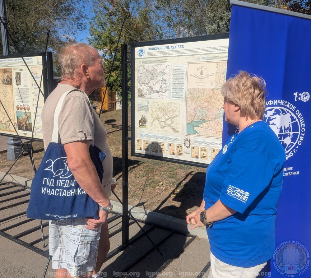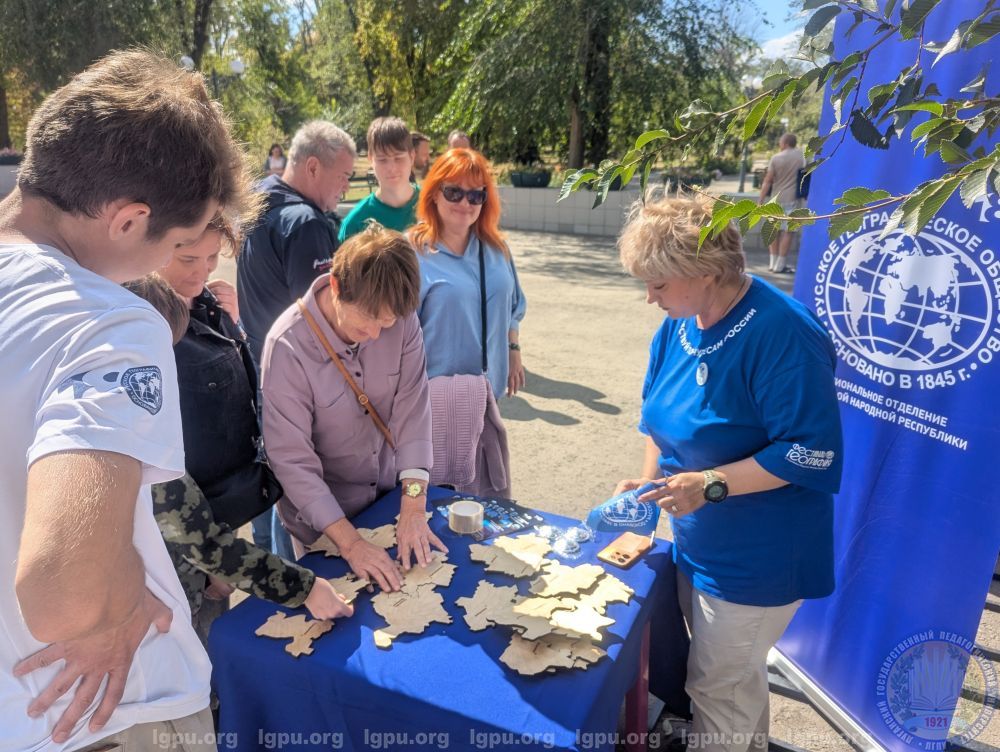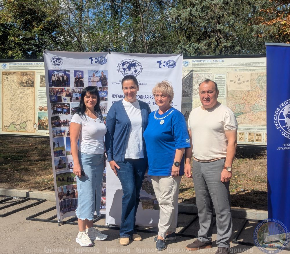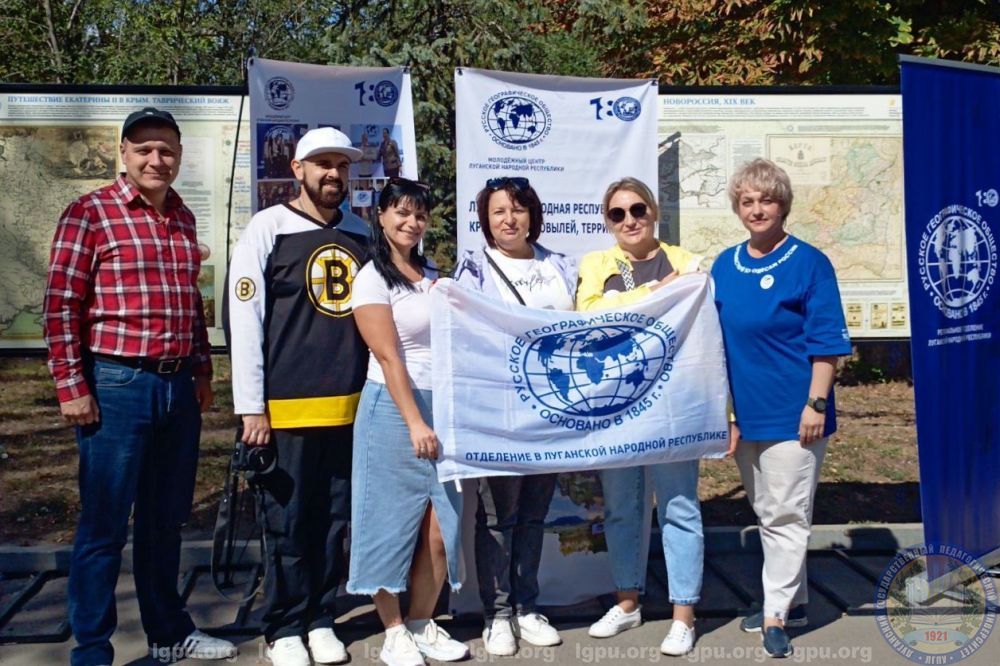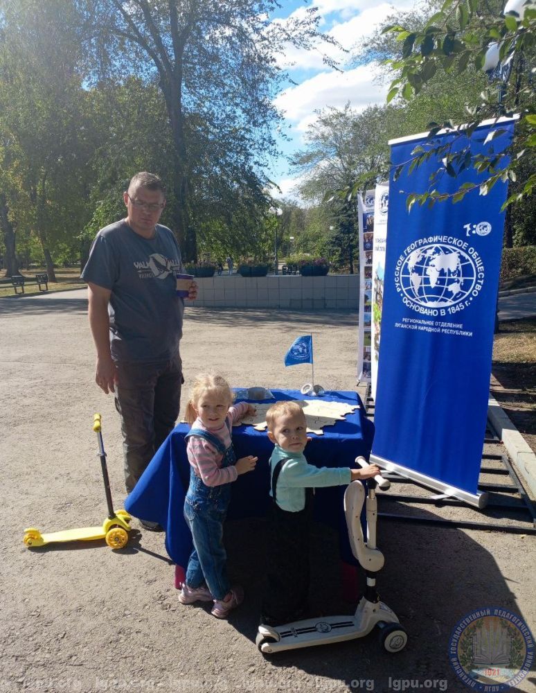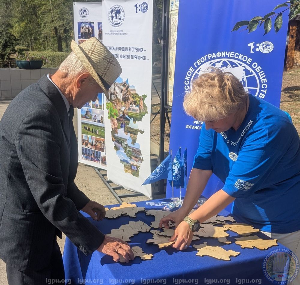 В рамках мероприятий, приуроченных к этим событиям в Парке культуры и отдыха им. Максима Горького представители и активисты Регионального отделения РГО в ЛНР и Молодежного центра РГО ЛНР, преподаватели и студенты ЛГПУ представили интерактивную площадку. Используя открытое выставочное пространство, активисты РГО смогли рассказать луганчанам и гостям города о деятельности старейшей общественной организации в России – Всероссийской общественной организации «Русское географическое общество», её отделении в Республике, о работе Молодежного центра. Посетителям выставки представилась возможность проявить географические знания о Родном крае – все желающие имели возможность собрать спилс-карту ЛНР, получить информационные флаеры и памятные призы от РГО в ЛНР.