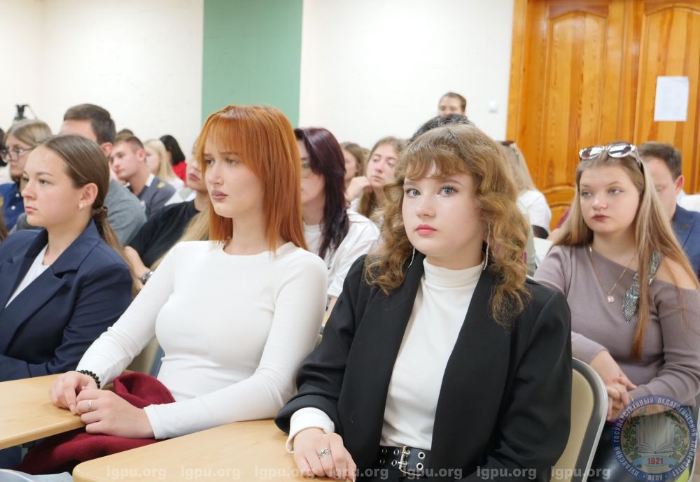 Старт федеральной программе в 2025/2026 учебном году дали в рамках Дня единых действий «Добро как норма жизни». Участниками мероприятия стали: проректор по учебно-методической работе ЛГПУ Елена Дятлова, заместитель Министра труда и социальной политики ЛНР Михаил Филонов, начальник отдела общего и кадетского образования Управления общего образования Министерства образования и науки ЛНР Оксана Колесникова, начальник отдела по информационному освещению Министерства молодежной политики ЛНР Валентина Зленко, представители общественных организаций и социальные партнёры, а также преподаватели и студенты ЛГПУ.