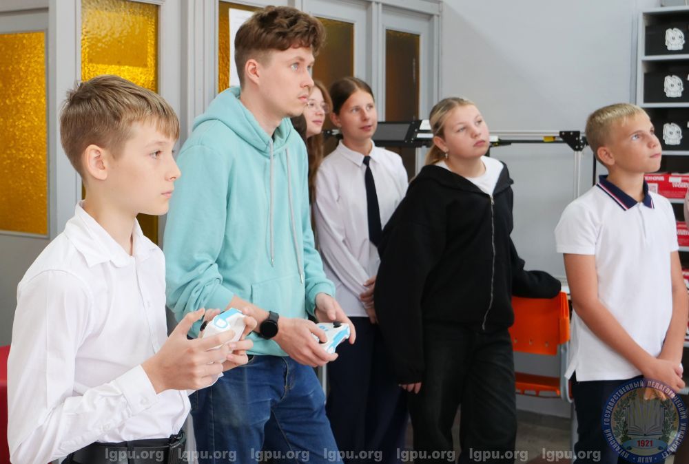 В Луганском государственном педагогическом университете 18 сентября в рамках реализации мероприятий проекта «Билет в будущее» для обучающихся 6-11 классов общеобразовательных организаций Луганской Народной Республики провели обзорную профессионально-педагогическую экскурсию по педагогическому технопарку «Кванториум имени Л.М. Лоповка» ЛГПУ.Организаторами встречи выступили Центр содействия трудоустройству студентов и выпускников ЛГПУ и Центр развития образования (филиал) ЛГПУ.