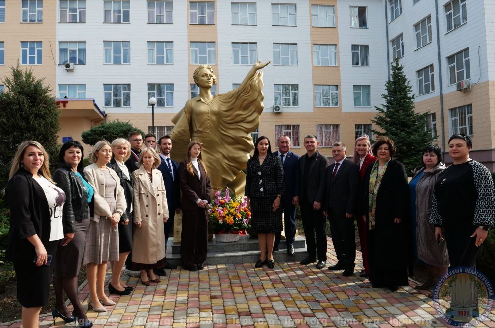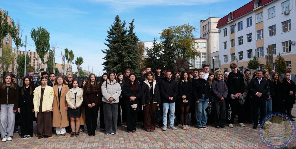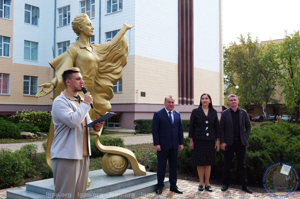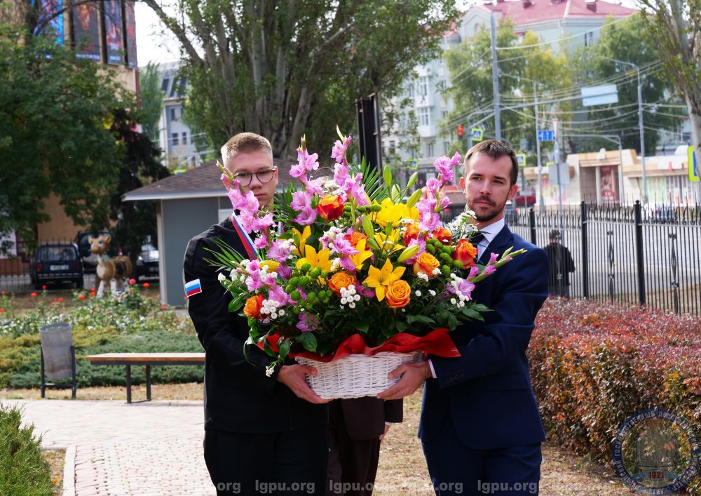 По сложившейся традиции перед началом праздничного концерта заместитель Председателя Народного Совета ЛНР Александр Ермоленко; председатель Попечительского совета ЛГПУ, депутат Народного Совета ЛНР Павел Пилавов; ректор ЛГПУ, депутат Народного Совета ЛНР Жанна Марфина, проректоры, преподаватели и студенты вуза собрались на студенческой площади педагогического вуза и возложили цветы к скульптурной композиции «Мой учитель», выражая уважение педагогам и наставникам.