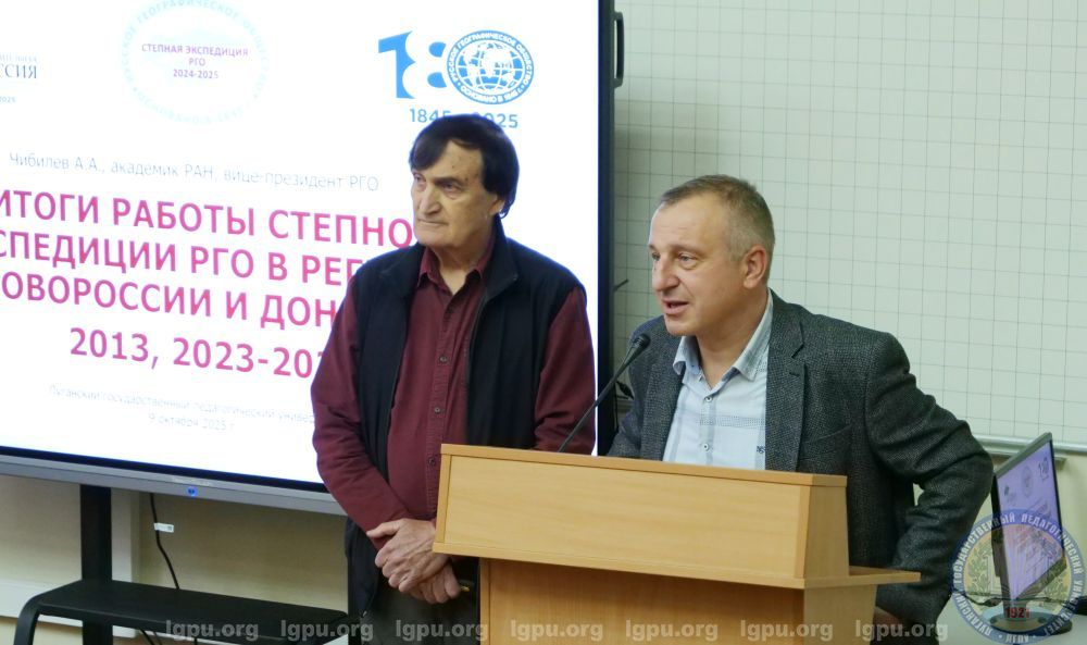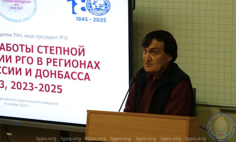 В ходе визита в Луганский педвуз Александр Чибилёв провел лекцию «Итоги работы степной экспедиции РГО в регионах Новороссии и Донбасса 2013, 2023 – 2025».