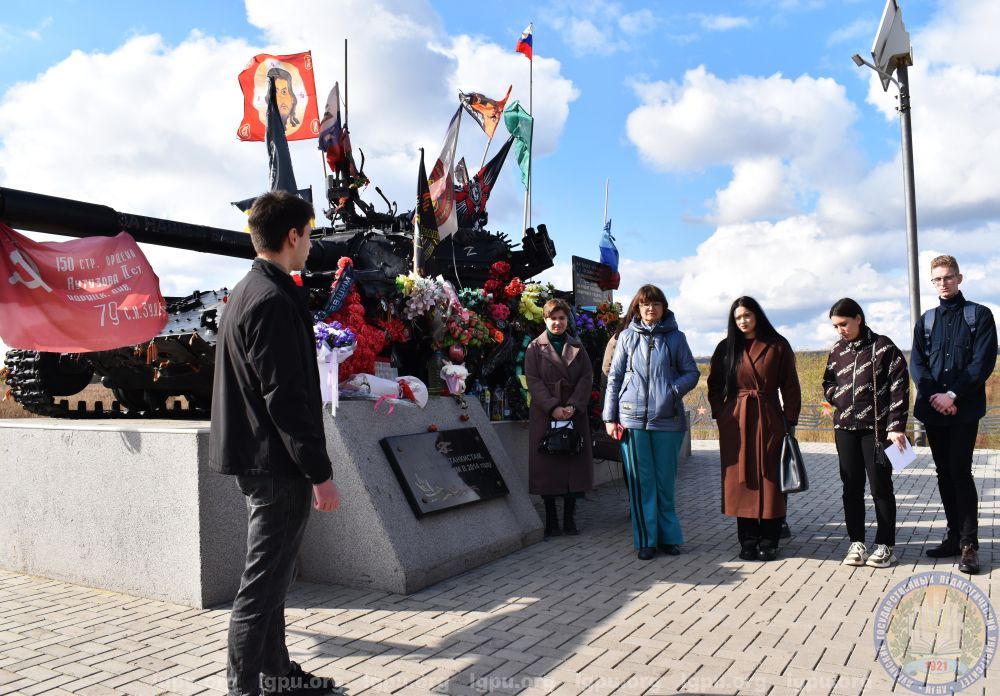 Экскурсию провел студент ИИМОСПН Богдан Тесля, который рассказал участникам о ратных подвигах жителей Луганщины в годы четырех войн: Гражданской войны (1917–1921), Великой Отечественной войны (1941–1945), вооруженного конфликта на Донбассе (2014–2022) и специальной военной операции (с 2022 года по настоящее время).