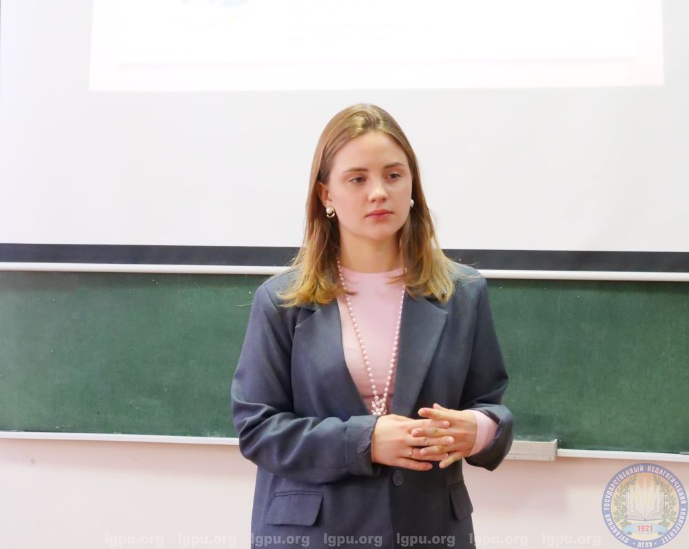 Модераторам профориентационного мероприятия выступила ассистент кафедры начального образования Института педагогики и психологии ЛГПУ Алина Сафронова: