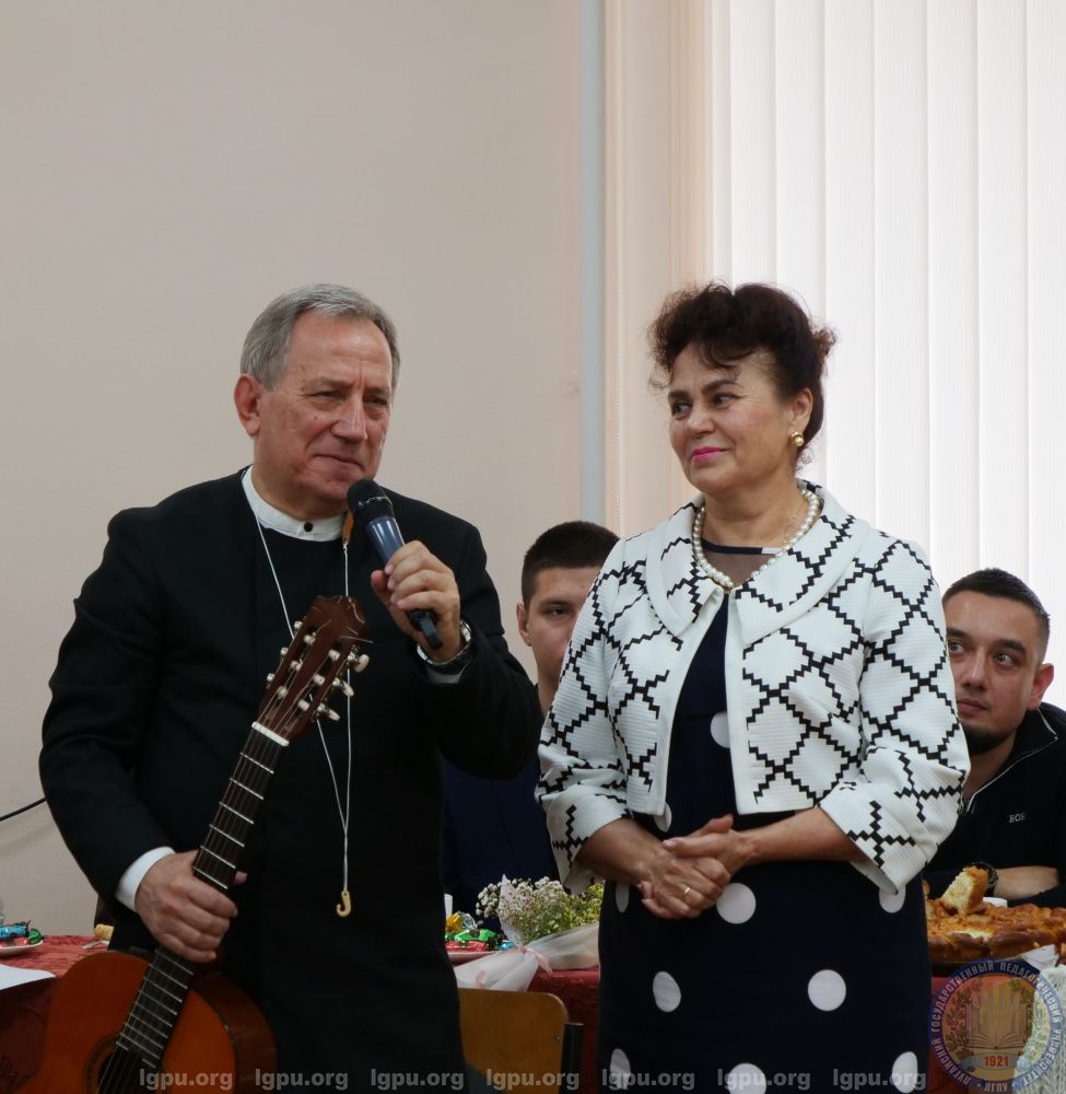 – Мы рады видеть в этих стенах столько семей, объединенных нашим любимым ЛГПУ. Попечительский совет с большим вниманием относится к поддержке семейных пар, мы делаем все возможное, чтобы вы комфортно учились и работали. Молодым семьям мы подготовили подарки, но мы помним и о семьях с многолетним опытом. Желаю всем присутствующим удачи и процветания! Радостно, что мы большая и дружная семья луганского педагогического, – обратился к участникам мероприятия председатель Попечительского совета ЛГПУ, депутат Народного Совета ЛНР Павел Пилавов.