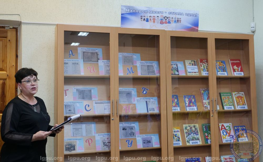 Директор научной библиотеки Ирина Морозюк провела для собравшихся обзорную лекцию о Музее букваря ЛГПУ, созданном по инициативе Ольги Бас. В нем собраны буквари из разных уголков нашей большой страны. Традицию постоянного пополнения музея новыми изданиями уже подхватили студенты ЛГПУ. Так, обучающиеся Института педагогики и психологии и Института филологии и социальных коммуникаций уже передали в университетский Музей букваря несколько книг. Ребята привезли их из регионов, в которых побывали в рамках форумов и программы «Больше, чем путешествие».