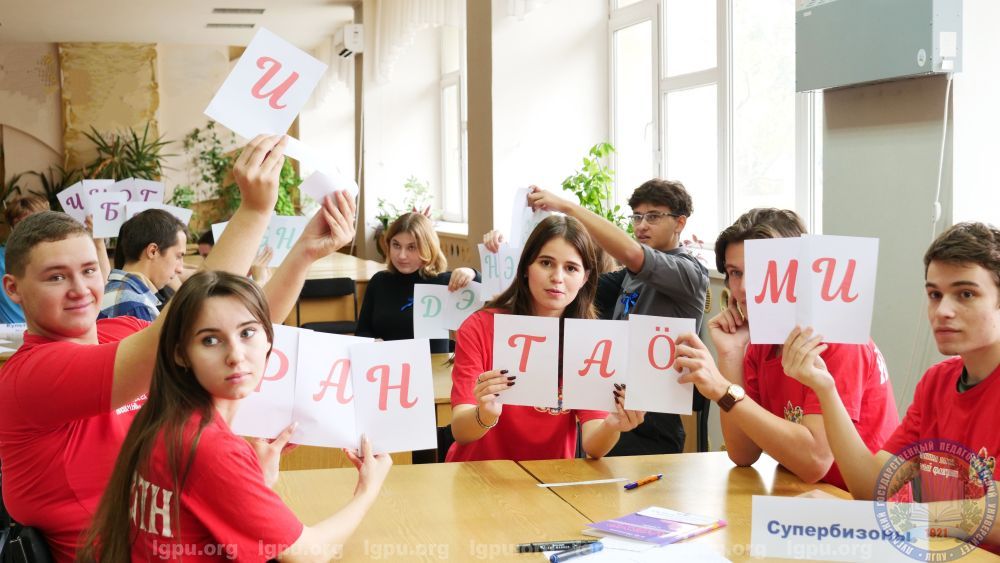 После торжественной части мероприятия все присутствующие приняли участие в интерактивной игре, где им было предложено собрать фразу «Мы одна страна» на разных языках народов России. Для студентов сотрудники библиотеки провели познавательный квиз. Главным призом стал уникальный подарок от Ольги Бас – торт в форме букваря.