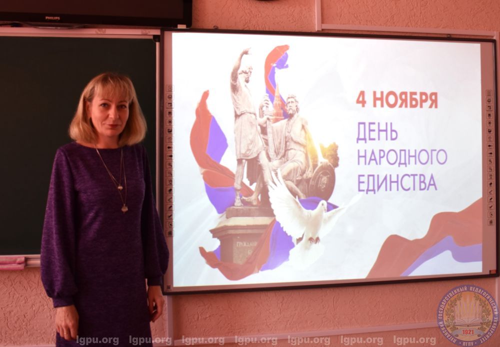 Мероприятия в ЛГПУ начались с исполнения гимна нашей страны. Кураторы академических групп рассказали студентам об исторических событиях, которые легли в основу праздника, о подвиге Козьмы Минина и Дмитрия Пожарского, Ивана Сусанина, а также о Казанской иконе Божией Матери.