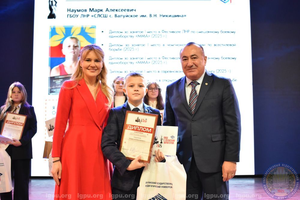 В рамках проведения молодежного патриотического форума «Земля Героев» 14 ноября в Луганском государственном педагогическом университете прошел Республиканский фестиваль достижений детей и молодежи «Лица с луганским характером». Фестиваль стал прикладной реализацией Концепции организации воспитательной работы на основе регионального компонента «Луганский характер».На мероприятии присутствовали: депутат Государственной Думы Федерального Собрания Российской Федерации, председатель Комитета Государственной Думы по развитию гражданского общества, вопросам общественных и религиозных объединений Яна Лантратова, сенатор Российской Федерации от Луганской Народной Республики, заместитель Председателя Комитета Совета Федерации по социальной политике Дарья Лантратова, Министр образования и науки ЛНР Иван Кусов, временно исполняющий полномочия Главы муниципального образования городской округ город Луганск Яна Пащенко, председатель Попечительского совета ЛГПУ, депутат Народного Совета ЛНР Павел Пилавов, ректор вуза, депутат Народного Совета ЛНР Жанна Марфина. Также в зале собрались представители вузовской общественности: проректоры, руководители структурных подразделений, преподаватели, сотрудники и студенты университета. Участники фестиваля и их наставники приняли участие в торжественной церемонии, в ходе которой лауреатов фестиваля наградили почетные гости и руководство университета.
