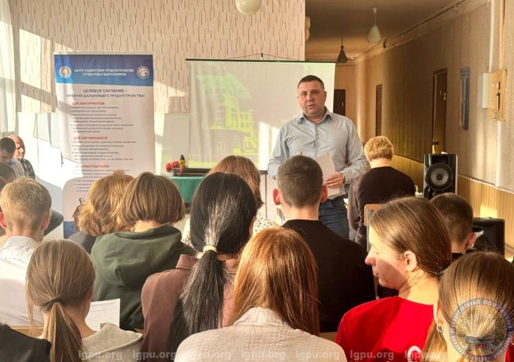 В рамках рекламно-профориентационной кампании 25 ноября представители Луганского государственного педагогического университета провели выездное профориентационное мероприятия для 115 обучающихся 9-11 классов Славяносербского муниципального округа, которое прошло на базе Славяносербской средней школы имени Д. Полянского.Организаторами встречи выступили Центр содействия трудоустройству студентов и выпускников университета ЛГПУ.
