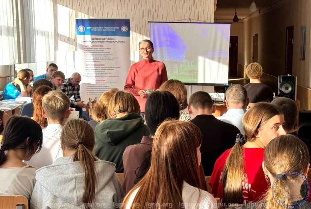 Об особенностях и преимуществах целевого обучения проинформировала заведующий отделом организации сопровождения молодых специалистов и методического обеспечения Центра содействия трудоустройству студентов и выпускников ЛГПУ Елена Погребенная: