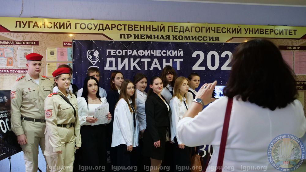 ‒ Вот уже который год стал традиционной площадкой для проведения становится Луганский государственный педагогический университет – кузница педагогических кадров Донбасса, центр изучения географии региона и «сердце» регионального отделения РГО в ЛНР. Эта акция давно стала доброй традицией для миллионов людей по всему миру и настоящим праздником для всех, кто увлечен географией. Сегодня диктант в ЛГПУ написало порядка 600 человек, объединенных любовью к географии, ‒ сообщила Юлия Заруцкая, руководитель Молодёжного центра РГО в ЛНР, старший преподаватель кафедры географии ЛГПУ.