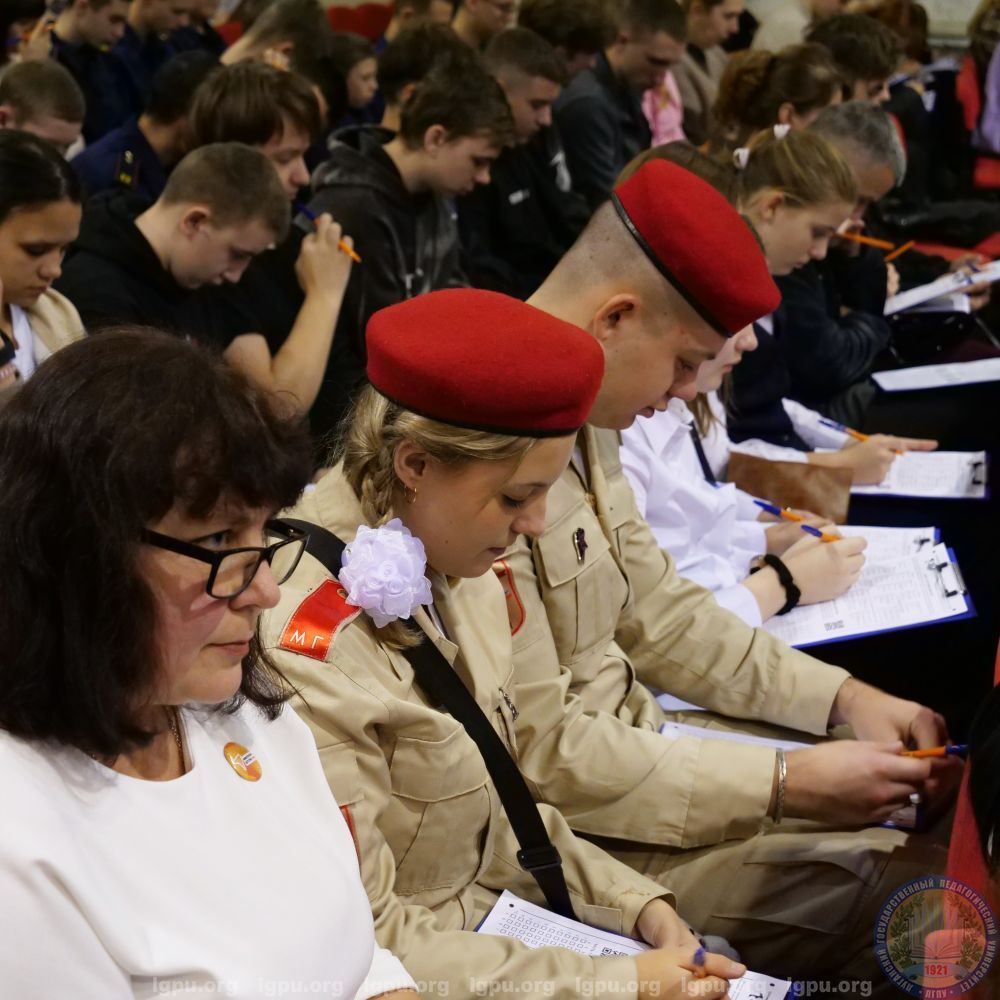 Всего площадка ЛГПУ собрала более 600 участников. Участие в диктанте приняли: проректор по учебно-методической работе ЛГПУ Елена Дятлова, проректор по воспитательной работе и молодежной политике Ольга Жданова, проректор по международной и проектной деятельности Иван Дяченко, директор Института естественных наук ЛГПУ, член Попечительского совета РГО ЛНР Спартак Гаврик, генеральный директор Луганского ликеро-водочного завода Луга-Нова Алексей Тихонюк, директор Республиканского центра туризма, экологии и краеведения «Возрождение» Борис Портной, руководители структурных подразделений вуза, преподаватели, сотрудники и студенты Луганского педуниверситета и его филиалов, участники Молодежного центра РГО ЛНР, ученики школ города Луганска и Беловодского района. В мероприятии также приняли участие обучающиеся Луганского кадетского корпуса Следственного комитета РФ, Луганского экономико-правового лицея-интерната имени Молодой гвардии, юнармейцы образовательных организаций Луганска.