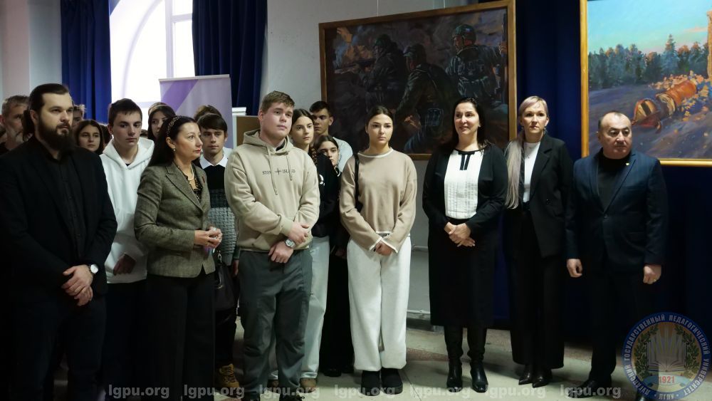 — Сегодня мы собрались здесь, чтобы вспомнить и почтить память героев нашего Отечества — тех, кто ценой своей жизни защищал нашу Родину, кто отдал всё ради будущих поколений. В этот особенный день, День героев Отечества, выставка, которая проходит сегодня на базе ЛГПУ, становится не просто художественным мероприятием, а глубоко символичным напоминанием о мужестве, самопожертвовании и несгибаемой воле наших героев.