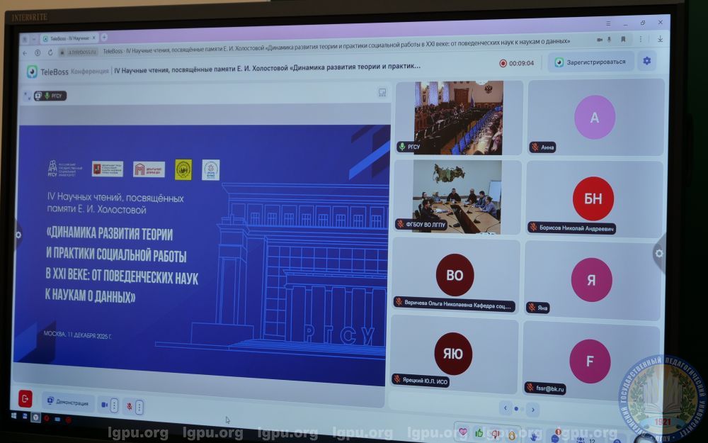 В рамках проводимой научно-исследовательской работы профессорско-преподавательский состав кафедры социальной работы Института истории, международных отношений и социально-политических наук по приглашению Федерального учебно-методического объединения по укрупнённой группе направлений и специальностей «Социология и социальная работа» принял участие в IV Научных чтениях, посвящённых памяти Е.И. Холостовой «Динамика развития теории и практики социальной работы в XXI веке: от поведенческих наук к наукам о данных», организованных Российским государственным социальным университетом.Организаторы мероприятия обратились с просьбой осветить результаты проводимой на кафедре работы по организации профессиональной подготовки будущих социальных работников к противодействию деструктивному информационно-психологическому воздействию на граждан.