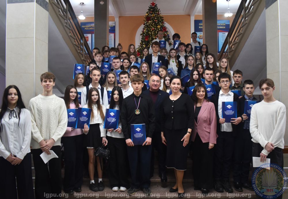 – Очень символично, что вы пришли в гости в ЛГПУ именно в день святого Николая! В этот день принято загадывать желания. И вот мы желаем вам не ошибиться в выборе жизненного пути, следовать по жизни уверенно и в полной мере реализоваться. Всё в ваших руках. Всё это, только начало большого пути. Так что, добро пожаловать в большую семью ЛГПУ! Поздравляю всех с праздником и с наступающим Новым годом! – сказала Жанна Марфина.