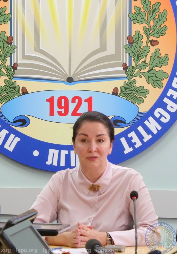 С приветственным словом к участникам обратилась ректор ЛГПУ, депутат Народного Совета ЛНР Жанна Марфина: