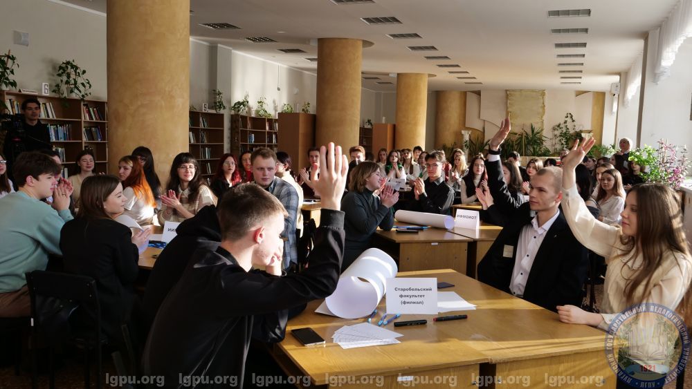 В творческом конкурсе приняли участие команды, представляющие все институты вуза, а также Многопрофильный педагогический колледж и Старобельский факультет ЛГПУ. Вместе с активными группами поддержки они наполнили научную библиотеку атмосферой живого интереса к науке и знаниям.
