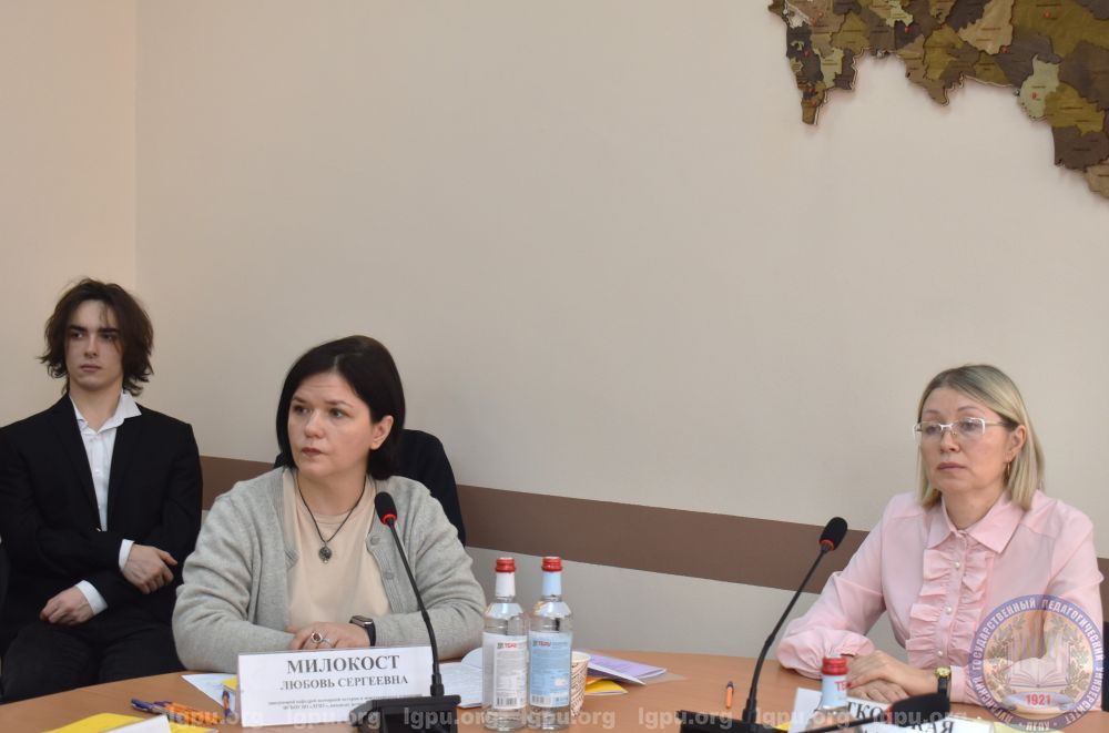 В пленарной части ЛГПУ представили ведущие ученые университета. С докладами выступили заведующий кафедрой всемирной истории и международных отношений Любовь Милокост и заведующий кафедрой политических наук и регионалистики Оксана Михайловская.