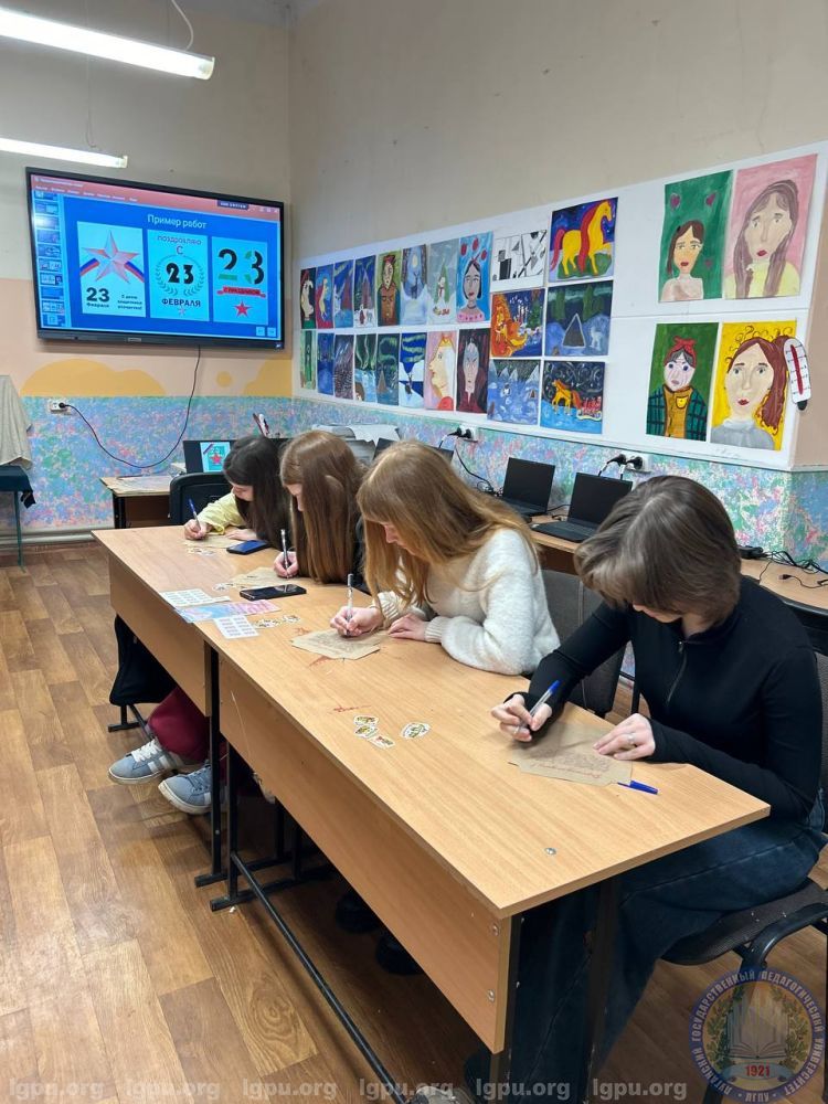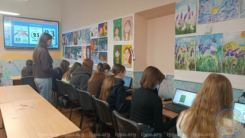 У учащихся детской художественной школы удалось сформировать представления о технологии производства полиграфической продукции, о выразительных средствах графического дизайна (композиция, цвет, шрифт, визуальная иерархия), при проектировании и разработке поздравительной открытки ко Дню защитника Отечества. Также в рамках мастер-класса учащиеся детской художественной школы написали и оформили письмо «Защитнику Отечества», при помощи фирменных наклеек, на ранее подготовленном оригинал-макете шаблона, разработанном студентами кафедры художественного образования ЛГПУ.