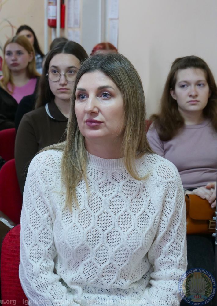 К студентам обратилась, начальник отдела культурно-досуговой деятельности Министерства культуры Луганской Народной республики Наталья Шишкова