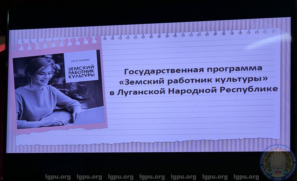 Основное внимание на встрече было уделено действующей программе «Земский работник культуры», которая призвана привлечь молодые кадры в учреждения культуры в сельскую местность и в малые города. Подробно о механизмах реализации программы рассказала главный консультант отдела музейного дела Министерства культуры Луганской Народной республики Татьяна Лисовая: